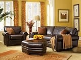 The Brindisi 100% Top Grain, Pure Aniline Leather Conversation Sofa & Ottoman is shown in Destiny Walnut. This Brindisi Leather Conversation Sofa Collection by Leather Trend features classic styling with hand tailoring and individually placed nail head trim. This Leather Sofa collection is made in North America with a kiln-dried Alder frame, padded in foam to protect the leather. Supported by Tempered, no-sag springs, and features Hi-Reflex foam cushion cores with feather blend toppers.