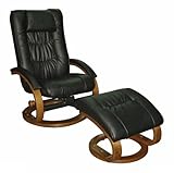 Mac Motion Chairs Model 2-Piece Recliner with Matching Ottoman Black Leather with Walnut Frame Features