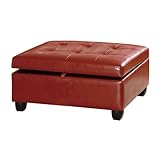 Bobkona Matrix Faux Leather Storage Ottoman in Pasion Red Color Overviews