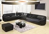 Contemporary Furniture Black Leather Extended Sectional Sofa with Coffee Table plus Matching Ottoman Features